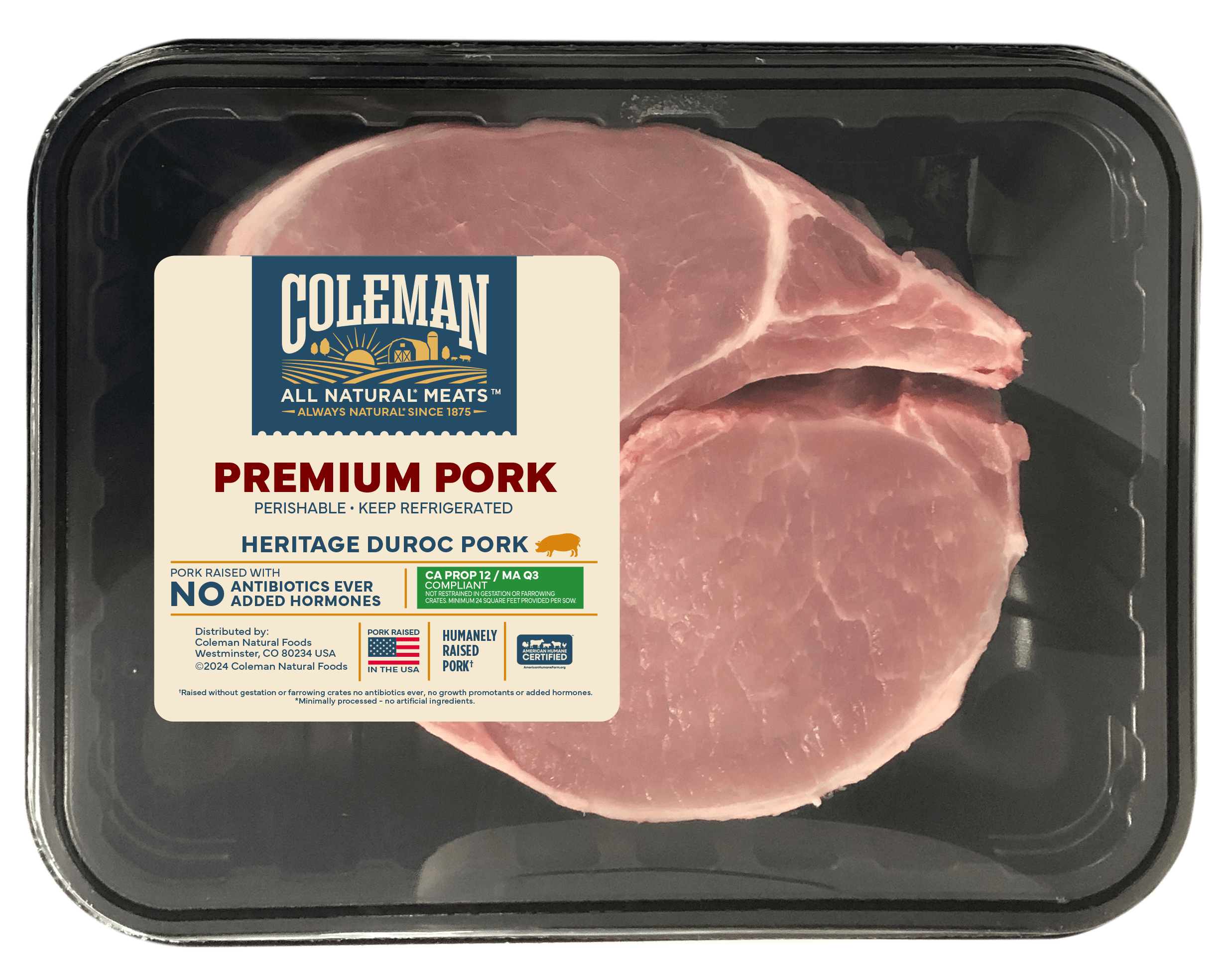 From juicy pork chops to versatile tenderloins, Coleman offers a variety of fresh pork cuts perfect for any recipe. Their all-natural pork comes from American farms and is raised without antibiotics or hormones, delivering the quality you can trust.