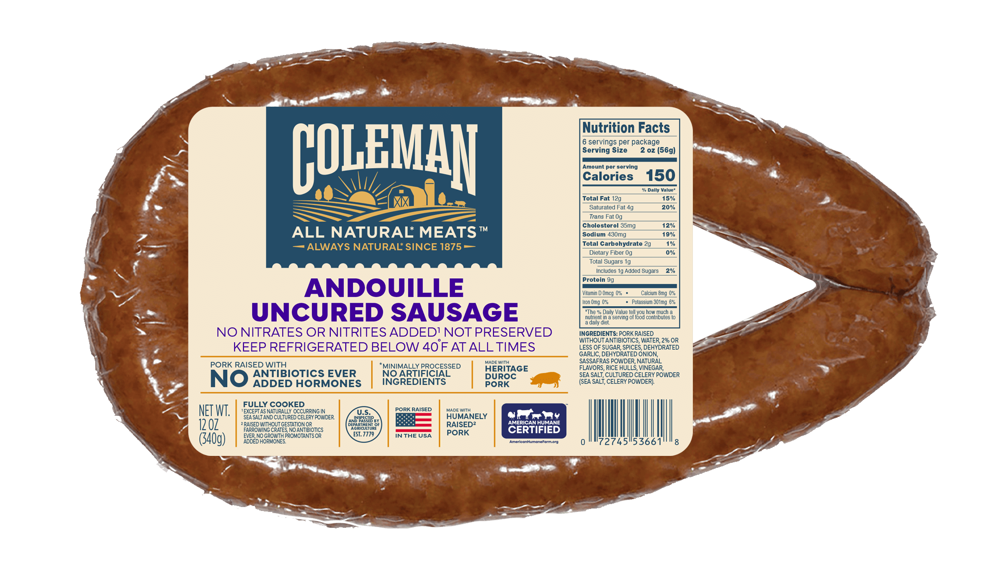 Coleman Uncured Sausages are made with all-natural pork raised without antibiotics or hormones on American farms. Their focus on simple, wholesome ingredients makes them a delicious and healthy choice for your family’s meals.